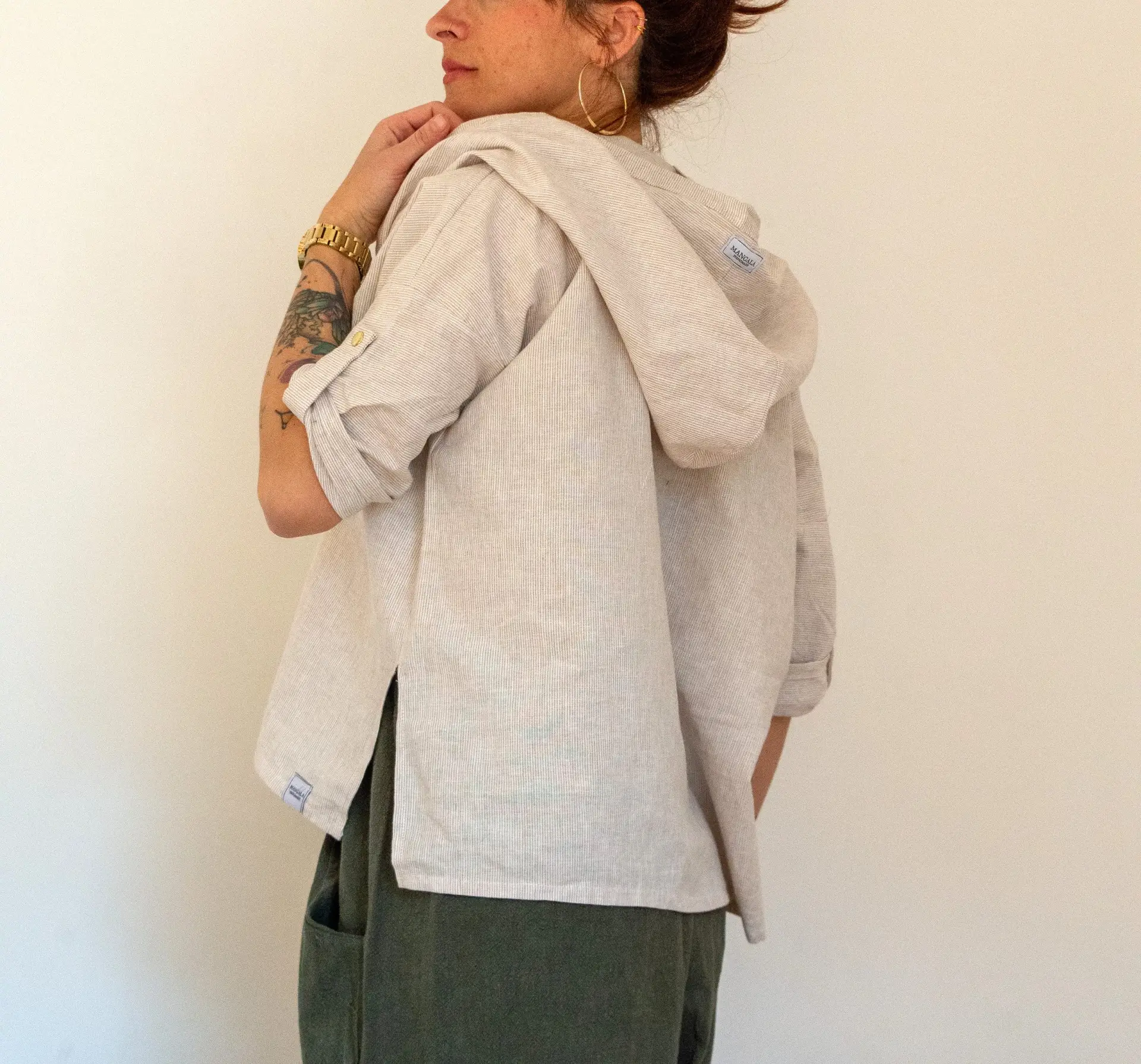 Soft as a morning breeze in the garden, the Alocasia Beige Shirt is made for moments where elegance meets ease. Crafted from breathable linen, its light stripes and gentle drape move with you, whether your fingers are in the soil or strolling along sunlit city streets.