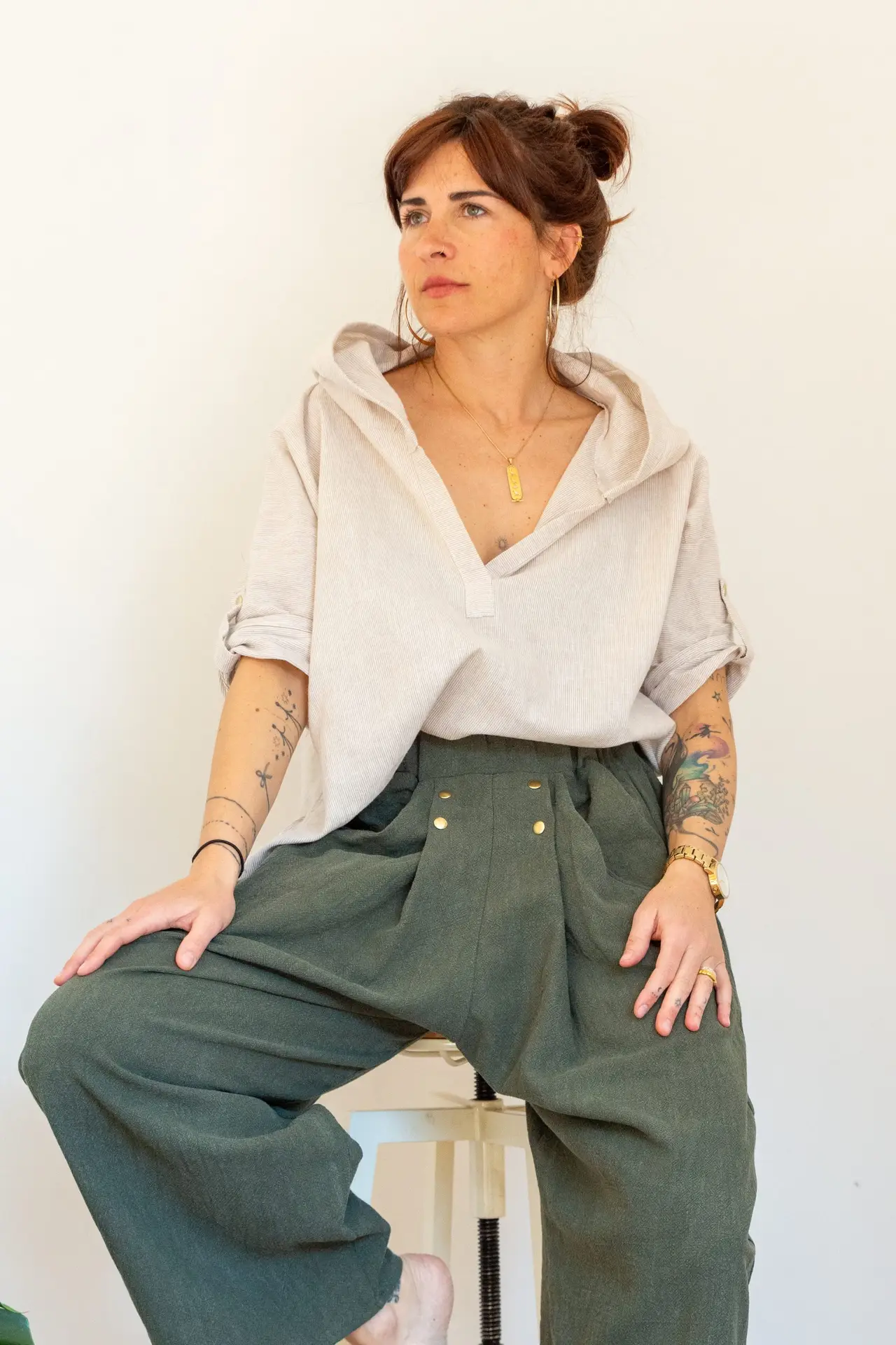 Designed for those who cherish both nature and simplicity, the Alocasia Shirt pairs beautifully with a favorite piece of jewelry, or stands alone as a statement of quiet, wearable elegance at home. Airy, light, and mindful, it’s a garment for living fully — in the garden, in the city, in life.