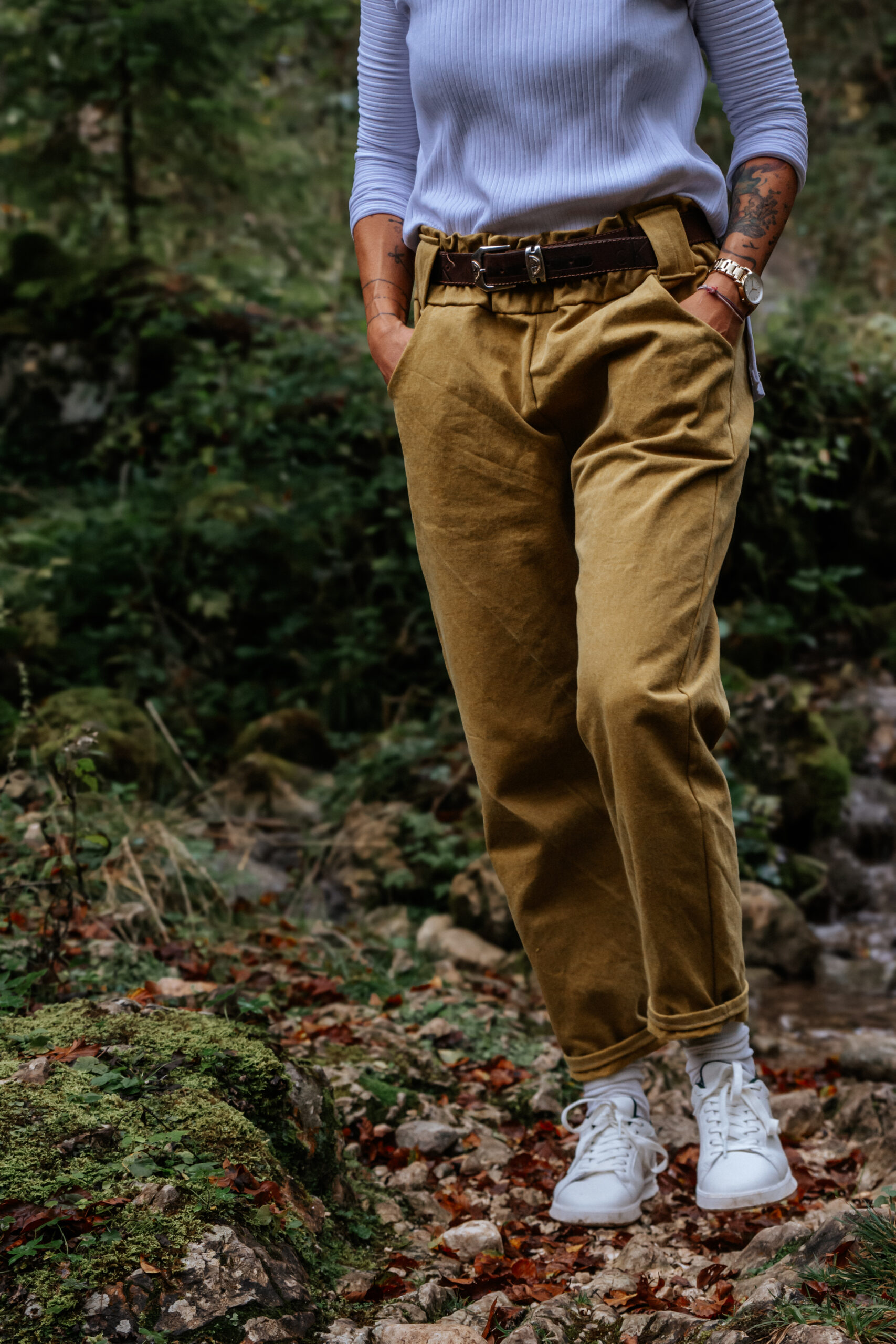Crafted from ochre canvas, these pants move with ease while holding the raw resilience of the outdoors.