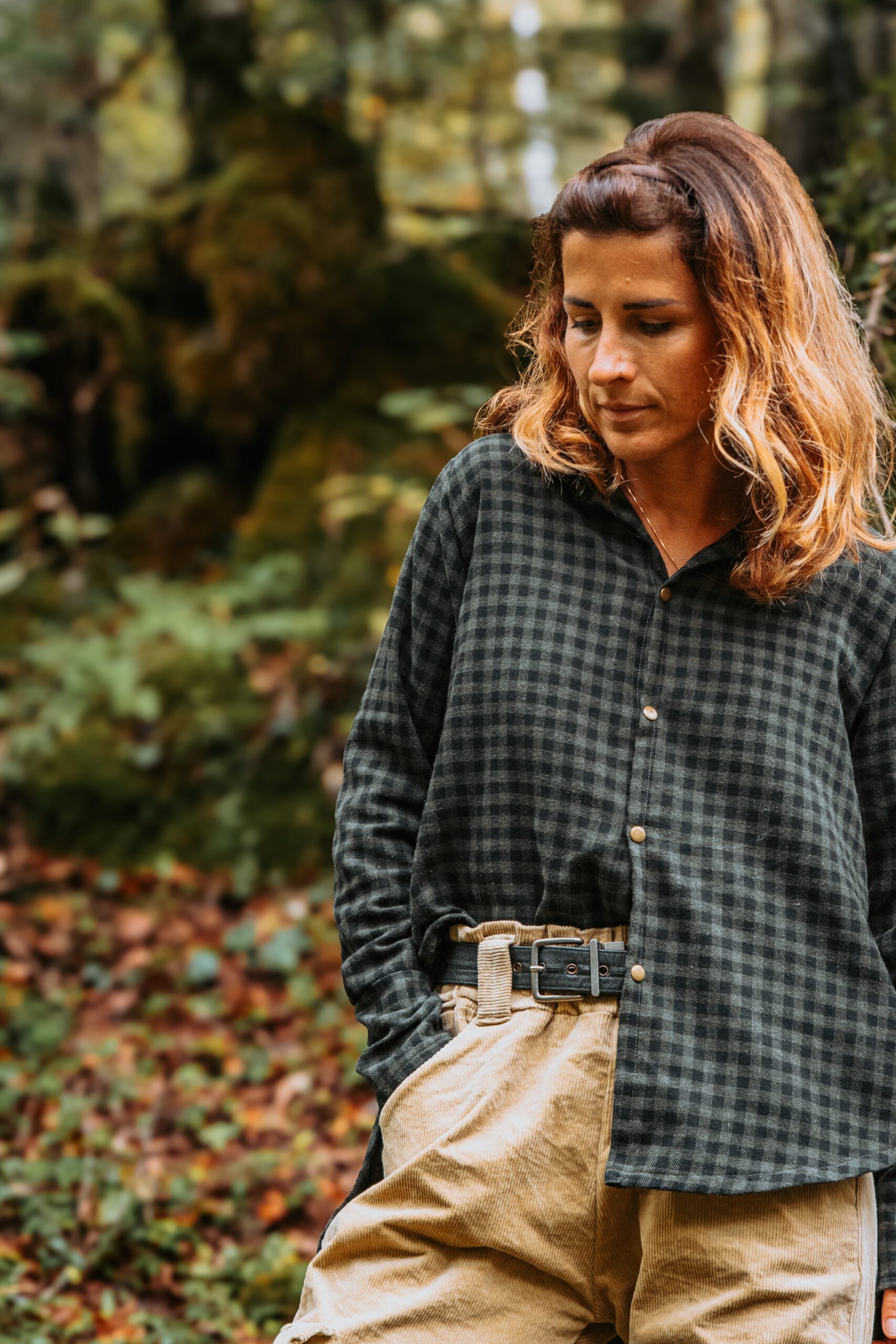 Nomad Moss is cut from soft flannel in deep forest tones — a shirt that carries the rugged ease of the outdoors with an edge of quiet elegance.